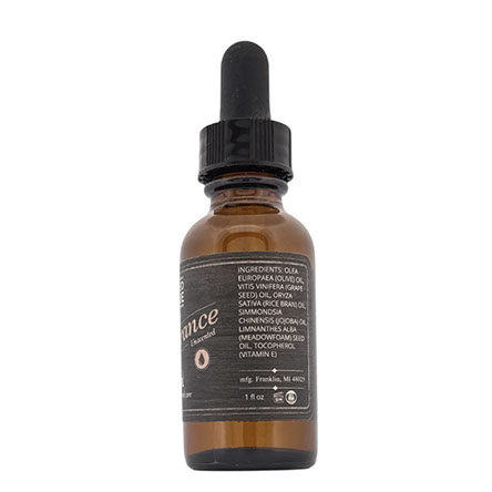 1 fl oz amber glass bottle with dropper top to preserve freshness and ensure accurate use. Durable, oil-proof label built for daily wear.