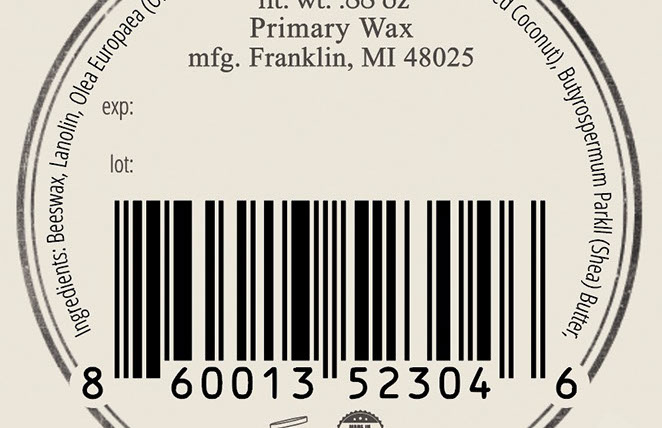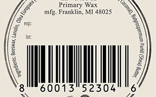 Handmade and hand-packaged using beeswax, lanolin, castor oil, coconut oil, shea butter, and vitamin E. Durable waterproof and oil-proof labels stand up to daily use.
